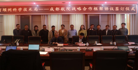 3月21日下午,在成都航空职业技术学院行政楼第三会议室,阿坝州科学技术局与成都航院签订战略合作框架协议,阿坝州科技局局长彭龙、成都航院校长刘建超出席签订仪式。