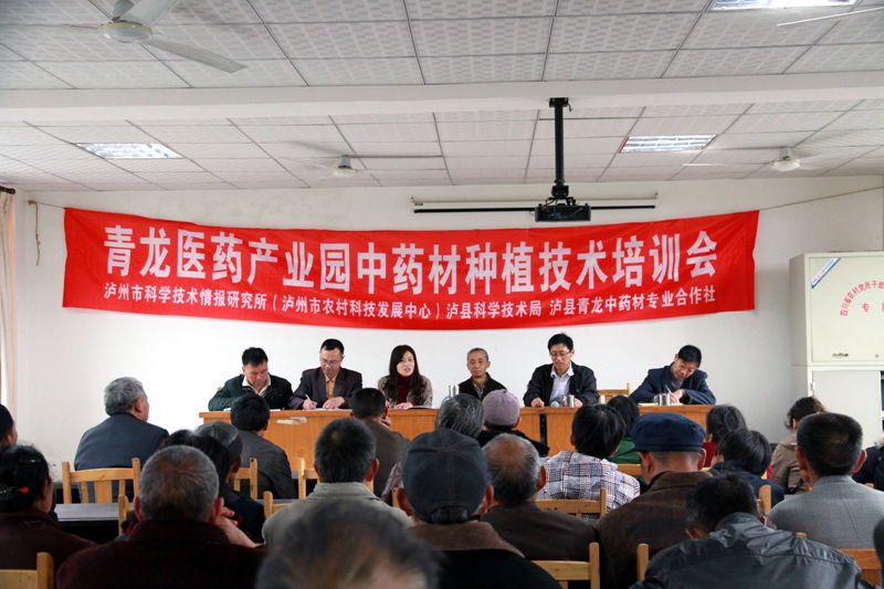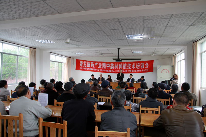 2013年4月5日,为了更好地服务青龙医药产业园建设,泸州市农村科技发展中心、泸县科学技术局在泸县青龙镇代桥村举办了“青龙医药产业园中药材种植技术培训会”,泸县青龙中药材专业合作社社员以及附近村镇中药材种植户共计100余人参加培训。省中药学会理事、泸州市中药学会副理事长庄成教授向广大种植户生动形象的介绍了中药材种植发展前景。泸县高级农艺师张启贵对巨型车前草高效配套种植技术以及木本金银花栽培管理技术进行了详细的讲解。