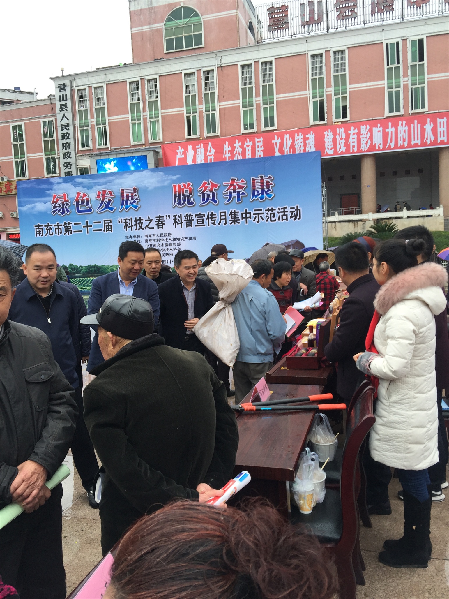 本次活动由市政府主办,市科技和知识产权局、市委宣传部、市科协和营山县人民政府联合承办,市、县相关部门、有关单位、驻市科研院所、科技企业、学会、协会等60余家单位270余人参加了活动,现场气氛十分热烈。参加单位围绕果树栽培、畜禽水产养殖、蚕业发展和农产品深加工等地方农业特色优势产业发展和城乡创新创业、脱贫攻坚技术需求,开展现场技术咨询指导和对接服务,展示推广农业新技术、新品种和企业创新产品,宣传科技精准扶贫经验成效,开展节能环保、健康生活知识问答,提供医卫义诊服务。