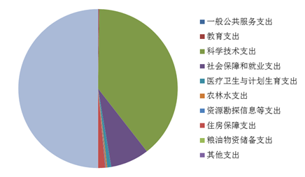 2017年一般公共预算财政拨款支出34,789.80万元,主要用于以下方面:一般公共服务支出57.00万元,占0.17%;教育支出122.55万元,占0.35%;科学技术支出27,300.38万元,占78.47%;社会保障和就业支出5,457.37万元,占15.69%;医疗卫生支出565.28万元,占1.62%;农林水支出181.33万元,占0.52%;资源勘探信息等支出94.00万元,占0.27%;住房保障支出1,004.71万元,占2.89%;其他支出7.18万元,占0.02%。