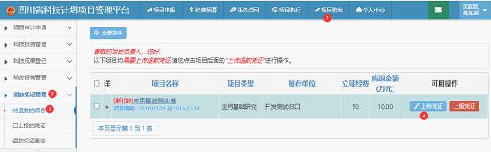 现科技厅将各有关单位应退回的四川省科技计划项目专项资金情况予以通告。请各有关单位见此通告后,联系科技厅相关处室,办理退回财政专项资金事宜,并于2月16日前将退款凭证上传至四川省澳门皇冠线上管理系统(见下图)。