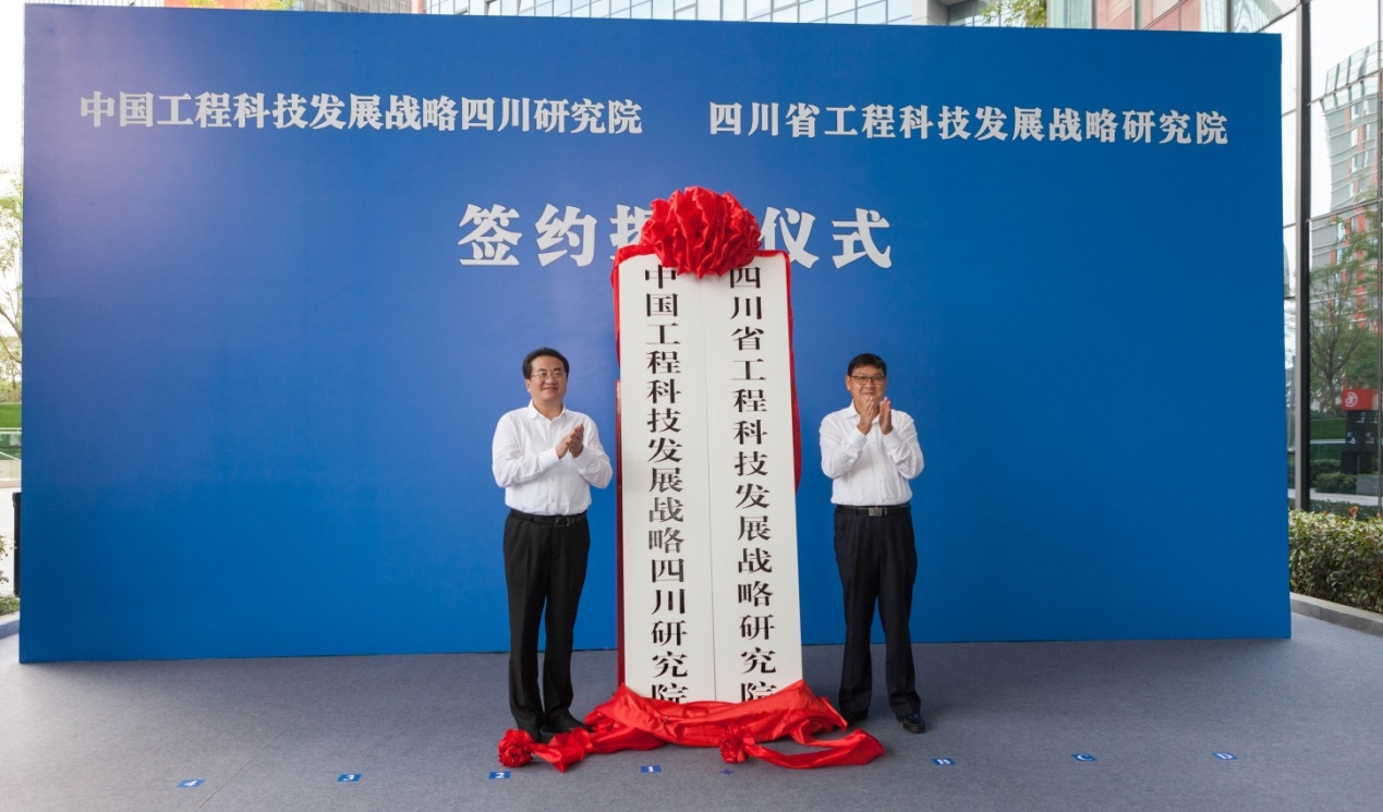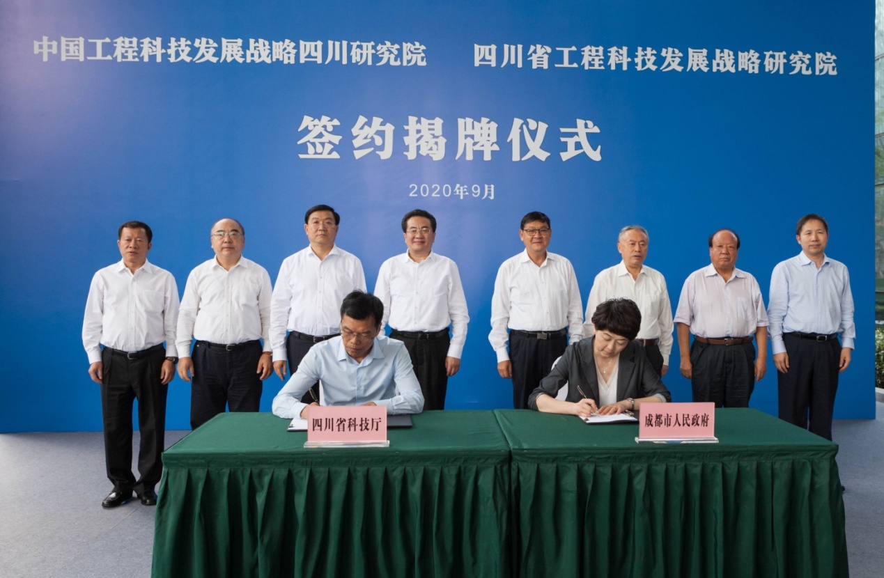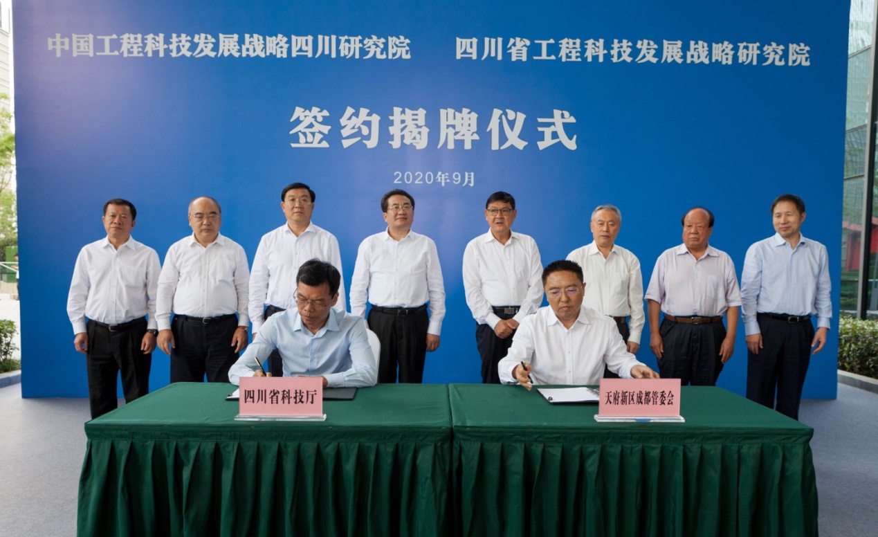 9月18日,中国工程科技发展战略四川研究院和四川省工程科技发展战略研究院签约揭牌仪式在天府新区举行。中国工程院院长李晓红院士、省委副书记邓小刚出席仪式并揭牌。成都市委副书记、代市长王凤朝,中国工程院院士赵宪庚、胡文瑞、王玉忠,省委副秘书长杨天宗,科技厅党组书记、厅长刘东出席仪式。