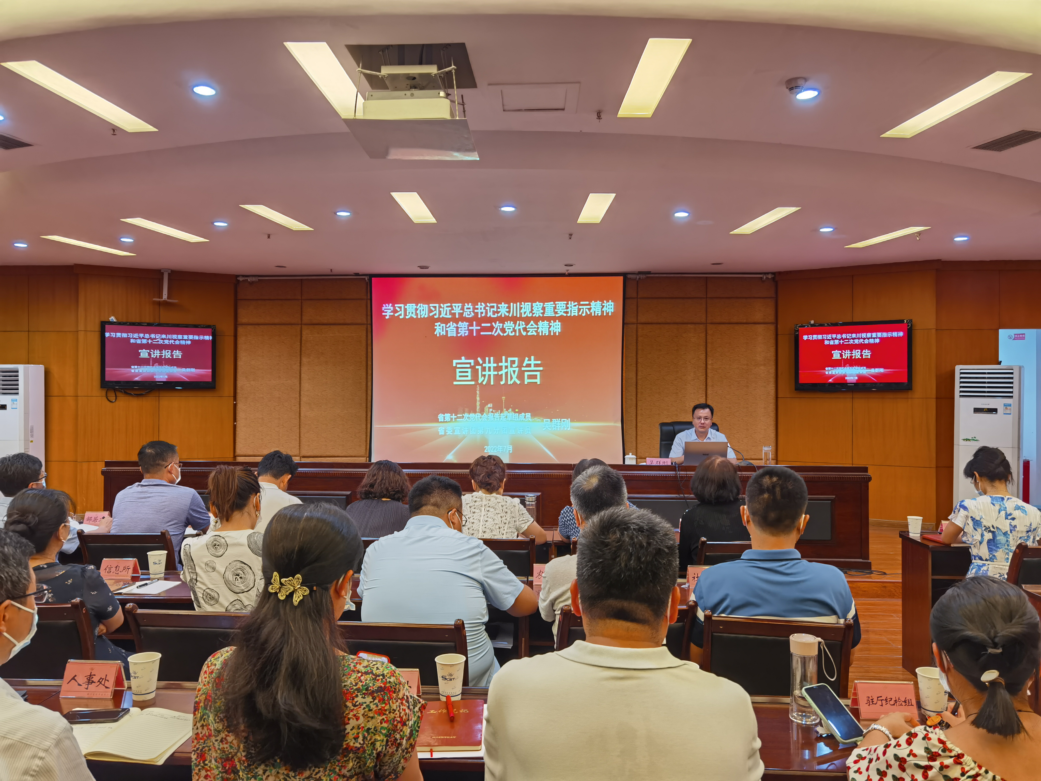 7月15日,科技厅党组理论学习中心组组织(扩大)学习会,深入学习习近平总书记来川视察重要指示精神和省第十二次党代会精神。省委宣讲团成员、科技厅党组书记、厅长吴群刚主持会议并作专题宣讲。